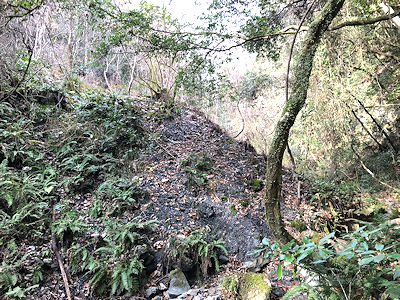 発見の詳細な時期は不明であるが、「岡山県地下資源調査報告書」の「多佳良鉱山鉱床調査報告」によると、天保年間以来銀山として知られておりと記載されていることから江戸時代後期には稼行していた様子がうかがわれる。同資料では昭和時代初期、昭和20年、27年に稼行していた記録があり、27年の稼行当時は精鉱を兵庫県の生野鉱山に売鉱していた。鉱山名は鉱業権者の「宝興業株式会社」に因んで名付けられたものと思われる。鉛、亜鉛を採掘した鉱山である。古生層粘板岩中の中温〜高温の熱水鉱脈鉱床である。鉱床は上の地図の周辺にいくつかあり、主要なものは地図に記載している坑口、ズリのある金山谷にあり、本坑、中切坑、南坑などがある。また、金山谷の南西方向の鉱区内に黒龍坑、東天坑があり、昭和15年ごろ採掘されていた。選鉱場は川をさらに少し遡った所にあったようだ。鉱石の品位は亜鉛10%、鉛14%で全体的に銅は少なかったようだ。銀は100g/t前後で比較的多く含まれていた。現地は国道から北に延びる谷を進んでいった沢が分岐する辺りにある。谷には川が流れており川に沿って進んで行くと左側の奥まった所にズリが見られる。ズリは粘板岩が多く全体的に黒色をしている。ズリを登っていくと小さな広場になっており、その奥の岩盤に縦長の坑口が掘られている。坑口は竪坑あるいは斜坑になっており、危険防止のため入口は梯子のような金属が設置され入坑できないようになっている。ズリ中に見られる鉱物は、黄銅鉱、閃亜鉛鉱、方鉛鉱、青鉛鉱、鉄明礬石類鉱物、方解石などである。銀は主に方鉛鉱に含まれるいわゆる含銀方鉛鉱として産出したものと思われる。 |