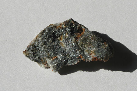 | [理想化学式] Cu6Fe2SnS8 銅,鉄,錫の硫化鉱物である。褐錫鉱と含有元素がほぼ同じで似た理想化学式になっているが,褐錫鉱に比べ錫の含有量が若干少ない。色は褐錫鉱をさらにオレンジ色味を強くしたような鋼色で金属光沢を示すが,光線の具合によっては赤銅色に見える場合がある。正方晶系である。微細なものが多いためはっきりした結晶を示すものは非常に稀で塊状,粒状を示すことが多い。熱水鉱脈鉱床,気成鉱床などに産出する。黄銅鉱,斑銅鉱,安四面銅鉱,黄錫鉱,褐錫鉱などと共生することが多い。硬度は3.5〜4とされている。実際の比重が掲載されている文献は見当たらないが計算上の比重は4.7とされている。オーストラリアの地質学者で南極の探検家でもあるダグラス・モースン氏が名前の由来となっている。オーストラリアのニューサウスウェールズ州のティンガにあるロイヤル・ジョージ鉱山のものが模式標本とされている。海外では中国,オーストリア,アメリカ,オーストラリアなど各国で見られるが,顕微鏡大のものが多く肉眼で確認できるのもは少ない。日本では兵庫県の多田鉱山,同じく兵庫県の生野鉱山,明延鉱山,島根県の都茂鉱山などで産出が確認されている。金生鉱山のモースン鉱は粗い石英中に産出する場合が多く,黄銅鉱,斑銅鉱,安四面銅鉱などと共生するが,ほとんどは褐錫鉱と共生している。金属鉱物としては独特の色合いをしている。褐錫鉱を見つけ出すことができればその周辺を注意深く観察することによって色合いから探し出すことは可能である。拡大写真では分かりづらいが,顕微鏡写真では周辺部の明るいオレンジ色を帯びた褐色のものが本鉱である。EDS分析を行った所,銅,鉄,錫,硫黄の構成元素比率(At%)がほぼ理想化学式に近く,構成元素比率が褐錫鉱と異なることからモースン鉱と同定した。 MENUページに戻る 前のページに戻る |
