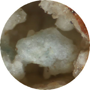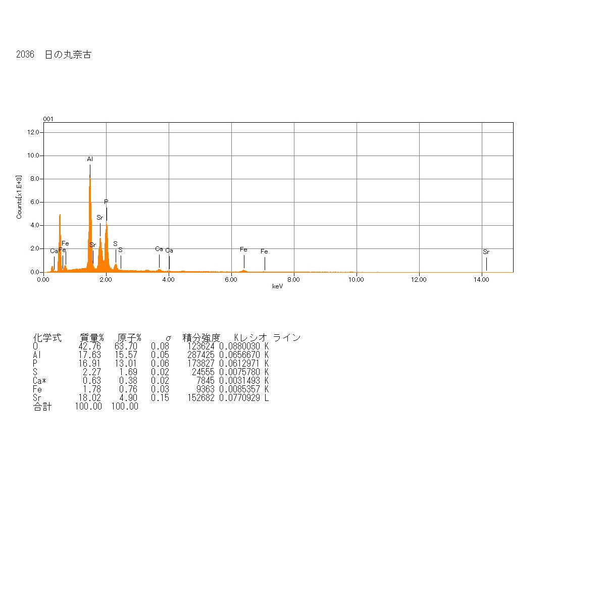 | [理想化学式] SrAl3(PO4)(PO3OH)(OH)6 ストロンチウム,アルミニウムの燐酸塩鉱物である。色は白色、黄色、蜂蜜色のものが多いが、時にピンク色、ライラック色、オレンジ色、無色のものも見られる。透明、半透明、不透明と様々であり三方晶系である。樹脂光沢、脂肪光沢、真珠光沢を示す。結晶は六角形に近いものや、変形した結晶のもの多く見られる。硬度は4.5〜5で比重は3.3とされている。ゴヤス石は鉛ゴム石グループに属しており,Srの部分をA,Alの部分をB,(PO4)(PO3OH)の部分をCとするとAは鉛,バリウム,カルシウムなどに,Bは鉄などに,Cは(PO4)2に置換されることがありそれぞれ別種となる。フランスの鉱物学者であるオーギュスタン・アレクシ・ダムール氏により、ブラジルのゴイアス州に因んで名付けられた。ただ、模式標本地はブラジルの隣接するミナスジェライス州、ディアマンティーナとなっている。海外ではドイツ、スイス、アメリカ、カナダなど各国で産出が確認されている。日本では今のところ鉱山では群馬県の津久原鉱山とこの山口県の日の丸奈古鉱山でのみ産出が確認されている。鉱山以外では福岡県福岡市の長垂で産出が確認されている。日の丸奈古鉱山のゴヤス石はズリ中に希に見られるが、他の多く産出する鉱物との質感の違いは分かるものの肉眼鑑定は難しい。拡大写真では右下の微細な白色が本鉱である。EDS分析ではストロンチウム、アルミニウム、燐を主とし硫黄が燐に比べ著しく微量のため本鉱と同定した。なお、日の丸奈古鉱山ではストロンチウムをバリウムに置換したゴルセイ石、ストロンチウムをカルシウムに置換したクランダル石も産出するが、鉱物採集仲間はそれらを採集している。 MENUページに戻る 前のページに戻る |